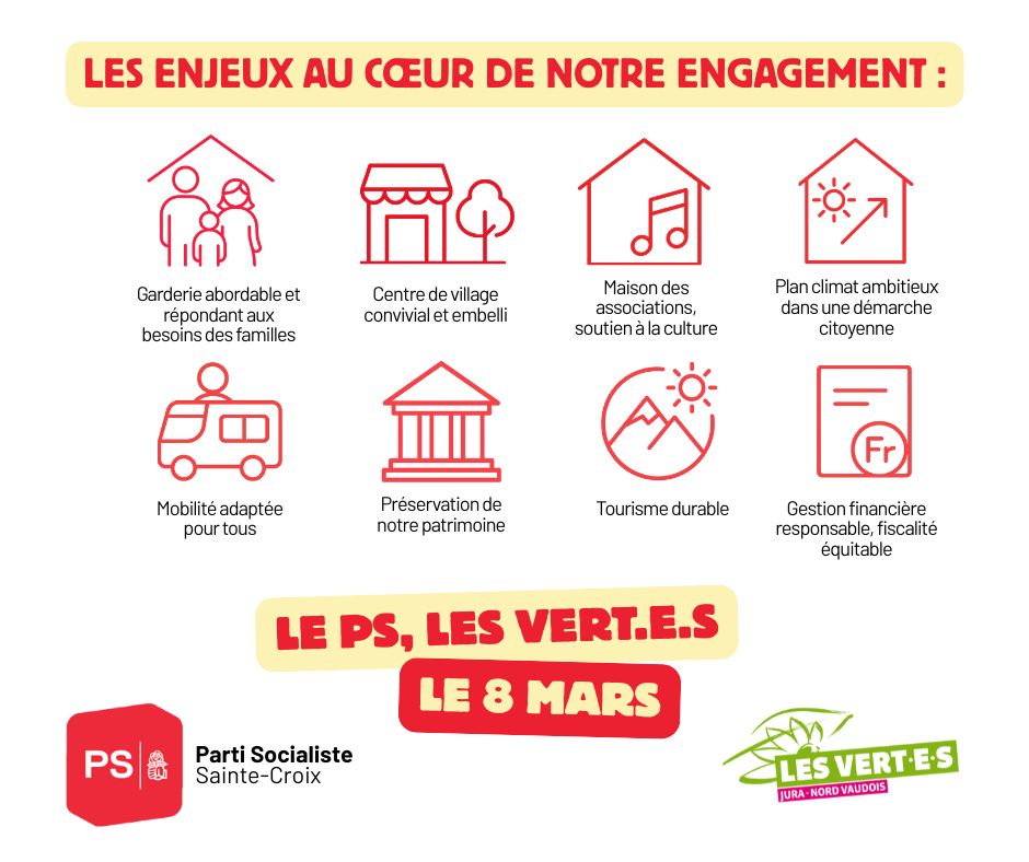 Le PS Sainte-Croix s’engage pour une commune sociale, solidaire et égalitaire.